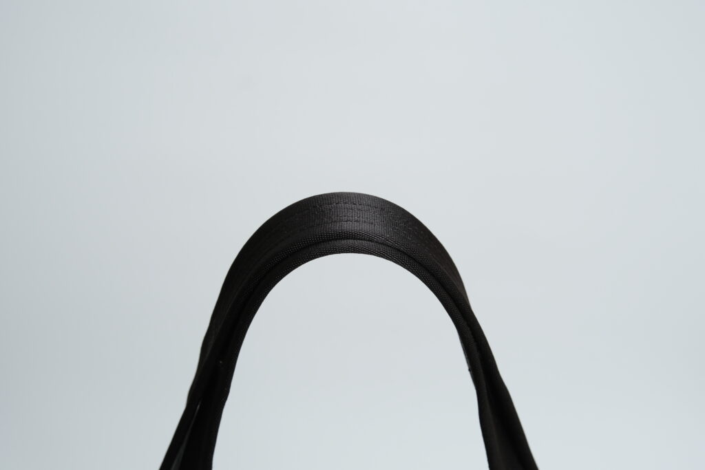 見るからに頑丈な取手ですが、実際かなり頑丈だと思います。本体との接合部の刺繍さえ問題なければ数100kgは耐えられそうな雰囲気です。