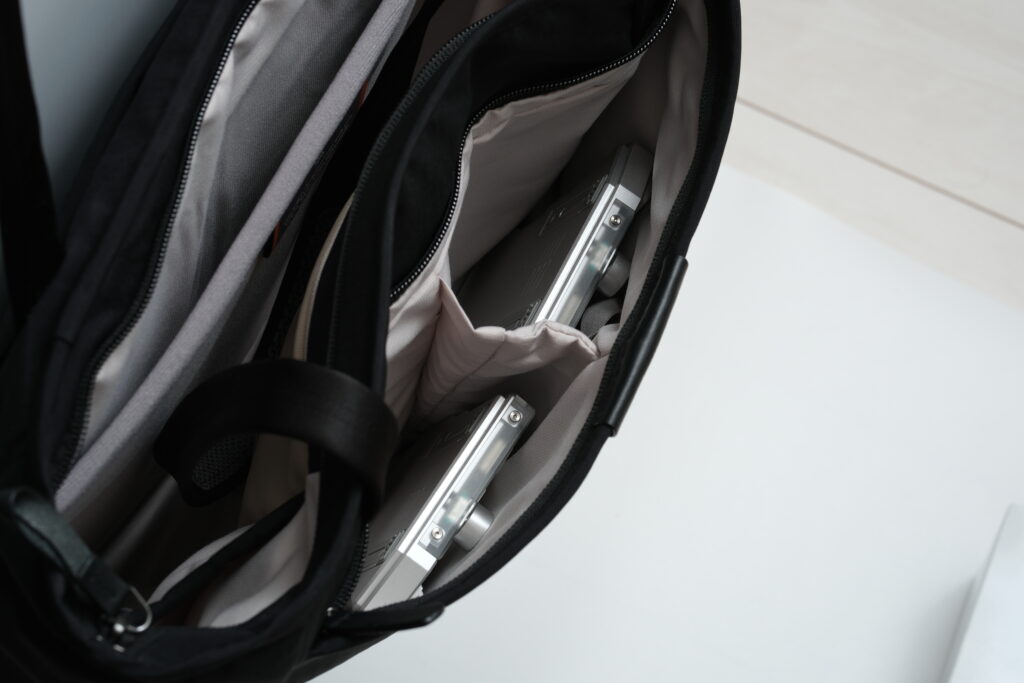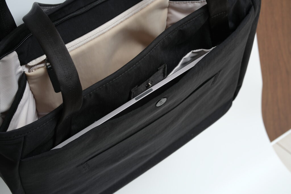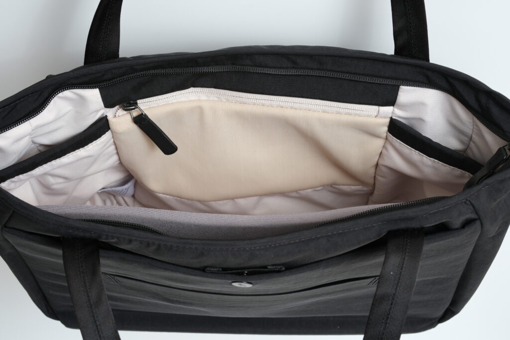 また、両手が必要な場合でも一時的に肩掛けしたり、肩にかけたまま内部アクセスも用意なのでこれからはリュックではなくトートとミニスリング系で事足りそうです。