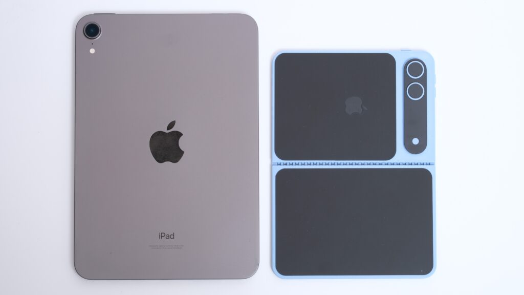 ただしiPad miniはベゼルが大きいので、Foldの画面に相当する黒い部分に注目すると意外と大きな差はないんじゃないかと思っております。