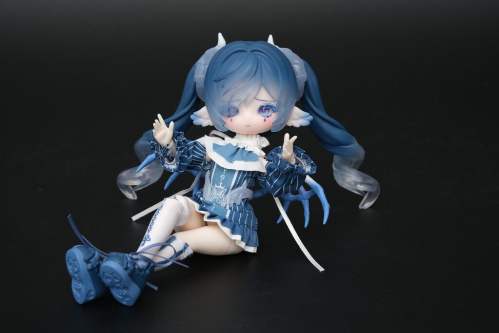関節がやわらかいので足を組んで座らせる事も出来ます。髪と腰の羽でいい感じにバランスを取りましょう…!