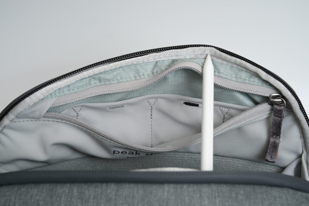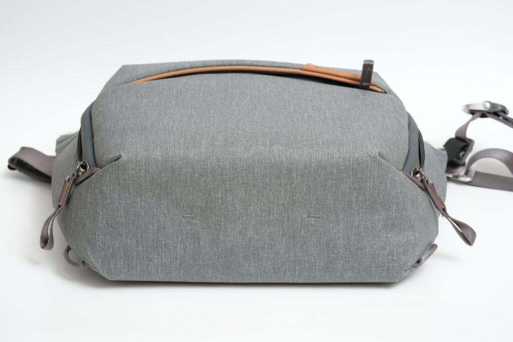 Peak Designの文字が刻印されたレザー部分がアクセントになっており、シンプルな中にも洗練された感じが漂います。