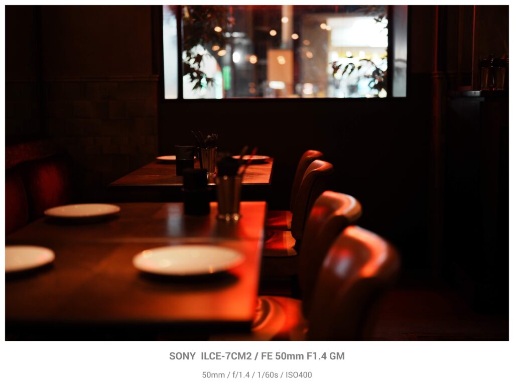 行きつけのBar Anomalyのマリーちゃんを撮影。こちらも店内が青白く暗いですが良い感じに撮れています。最短撮影距離もAF時に41cmなので、50mmの単焦点レンズにしてはかなり寄れる方だと思います。(最大撮影倍率は0.16倍)