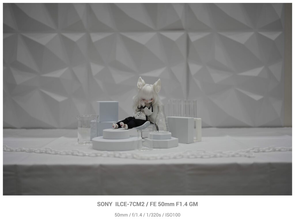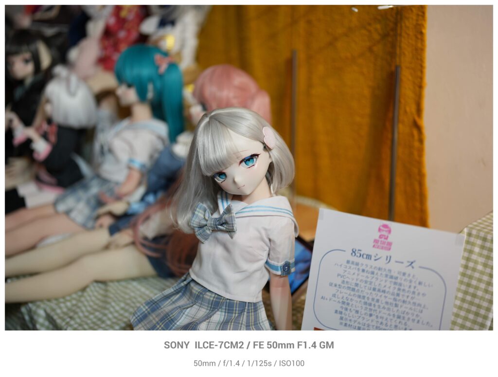 こちらは85cmのお人形さん。肌の階調のなだらかさを感じます。背景との分離もバッチリですが、とろりとボケているので何が写っているのかの情報はしっかりと残っています。