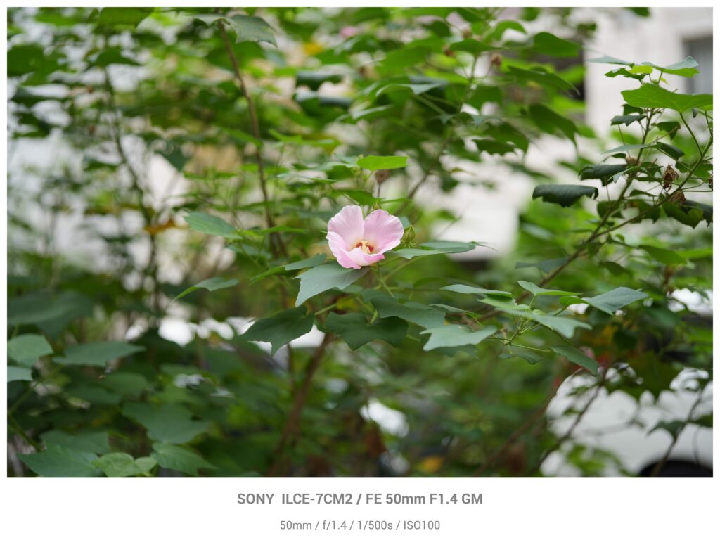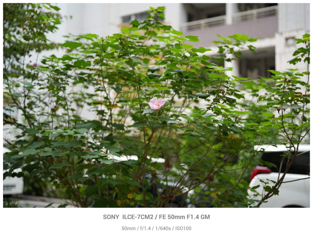まずは見つけた自然を撮影してみます。良い感じに花が一輪咲いていたので撮りました。F値は開放です。