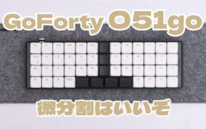 「いきなり完全に分割されたキーボードを使うのはハードルが高い」という方におすすめなのが、左右のキーがわずかにハの字に傾斜した微分割(アリス配列など)のモデルです。通常のタイピング感覚を維持したまま、手首への負担を自然に軽減してくれます。特にGoFortyシリーズの「O51Go」は、打鍵感の良さと省スペース性を両立した、微分割の一つの最適解と言える名機です。