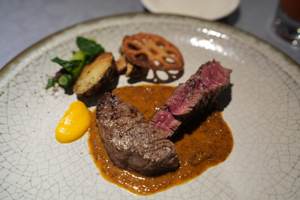 料理の撮影にも適しています。被写体に寄ることでピント面のシャープさが際立ち、F2.8の自然なボケ味と相まって、肉汁の質感やシズル感がしっかりと伝わる一枚になりました。
