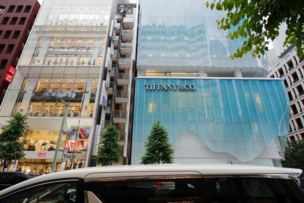 銀座のTiffany&Co.です。40mmで撮影すると目の前の景色を自然に切り取れますが、ここから20mmまで引いてみると↓