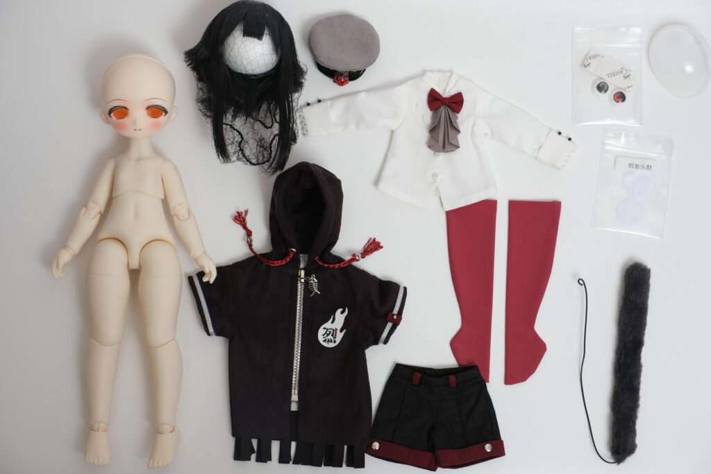 素体とメイク済みヘッド、ウィッグ、アイ、服一式などが盛り沢山です。これはお得。